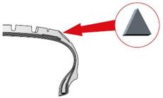 Trekantmærker (▲) viser slidbanerillepositionen for slidindikatorerne. Slidindikatorerne repræsenterer 1,6 mm resterende slidbanedybde, hvorefter dækket skal udskiftes.
